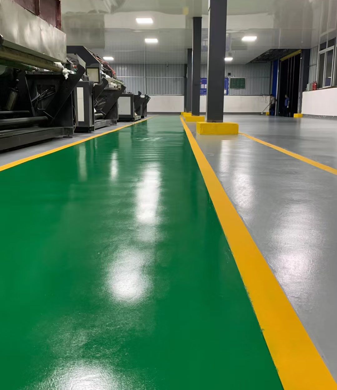 当然,环氧地坪也有其不可替代的优势。在装饰性上,它提供了极大的设计自由度,可以实现图案、标识、分区线一体化成型,提升空间美感与管理效率。对于注重品牌形象和客户体验的商业场所而言,这种视觉表现力极具吸引力。同时,某些特殊功能型环氧地坪还具备防静电、抗菌、防火等特性,满足特定行业的技术规范要求。而固化地坪外观较为单一,虽可通过染色工艺实现一定色彩变化,但整体质感偏冷峻工业风,难以匹配高端商业氛围。